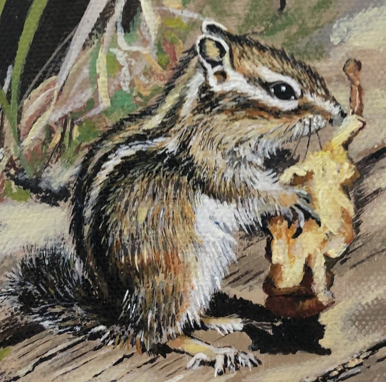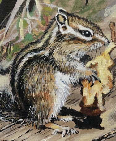 Das Streifenhörnchen gestaltete ich mit feinen Details, die die Natürlichkeit deutlich hervorheben sollen.